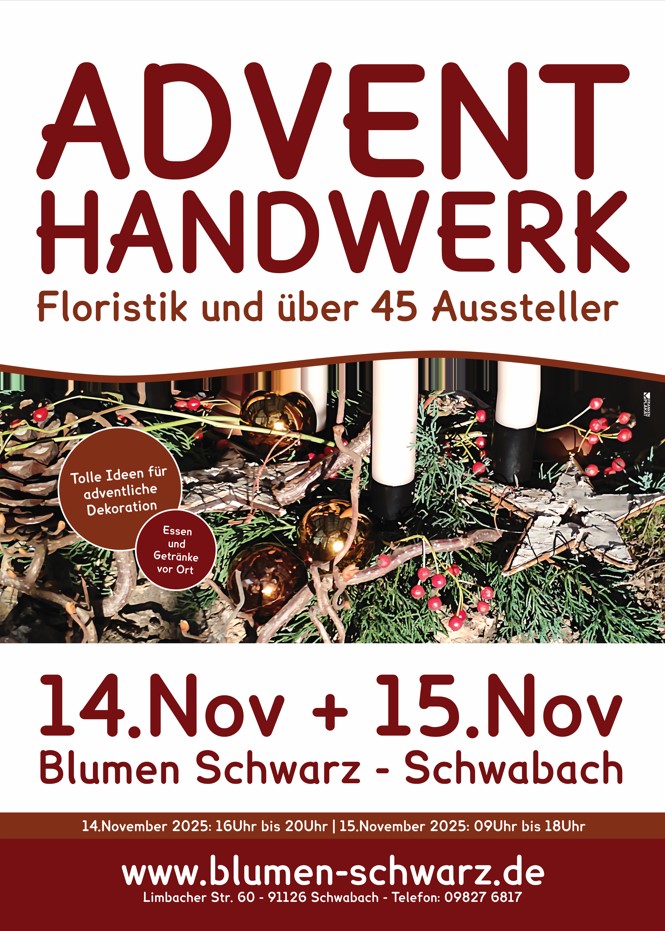 Blumen Schwarz Schwabach: Adventsausstellung und Kunsthandwerkermarkt